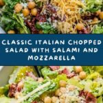 - Assemble the salad: In a large mixing bowl, add the shredded iceberg and romaine lettuces, drained chickpeas, thinly sliced Italian salami, and shredded mozzarella cheese. Pour the prepared dressing evenly over the salad ingredients.