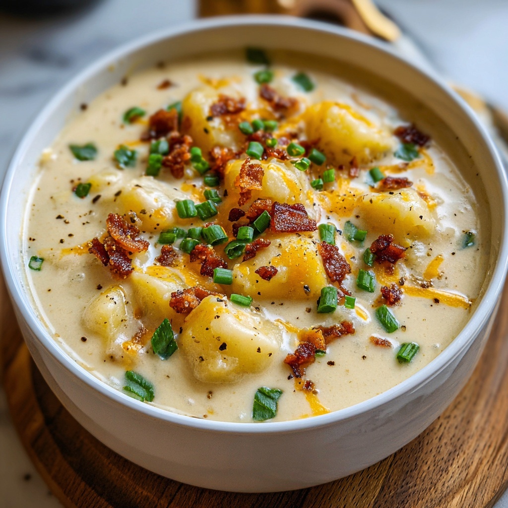 The finishing touches are what make this soup truly shine. Top each bowl with extra crispy bacon pieces, a dollop of cool sour cream, a hearty sprinkle of shredded cheddar cheese, and a scattering of fresh green onions. These garnishes not only enhance the flavors but also create an inviting, colorful presentation that will delight anyone lucky enough to dig in.