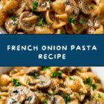 This French Onion Pasta recipe combines the rich, caramelized flavors of classic French onion soup with hearty pasta. Slow-cooked onions are simmered in a savory broth infused with Worcestershire sauce, soy sauce, and aromatic herbs, then combined with pasta and melted Gruyere and Parmesan cheeses for a comforting, cheesy dish perfect for lunch or dinner.