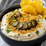 This dip pairs perfectly with crunchy potato chips, sturdy crackers, or even fresh vegetable sticks like carrots, celery, and bell peppers. These sides offer the ideal texture contrast and make the dip feel light yet indulgent. For a true party hit, try serving it alongside crisp fried pickles to echo that signature tangy crunch.