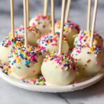 These Funfetti Cake Pops are a delightful and colorful treat perfect for any occasion. Made from moist vanilla cake mixed with rainbow sprinkles and creamy frosting, then coated in a smooth layer of white chocolate, these bite-sized cake pops are fun to make and irresistible to eat.