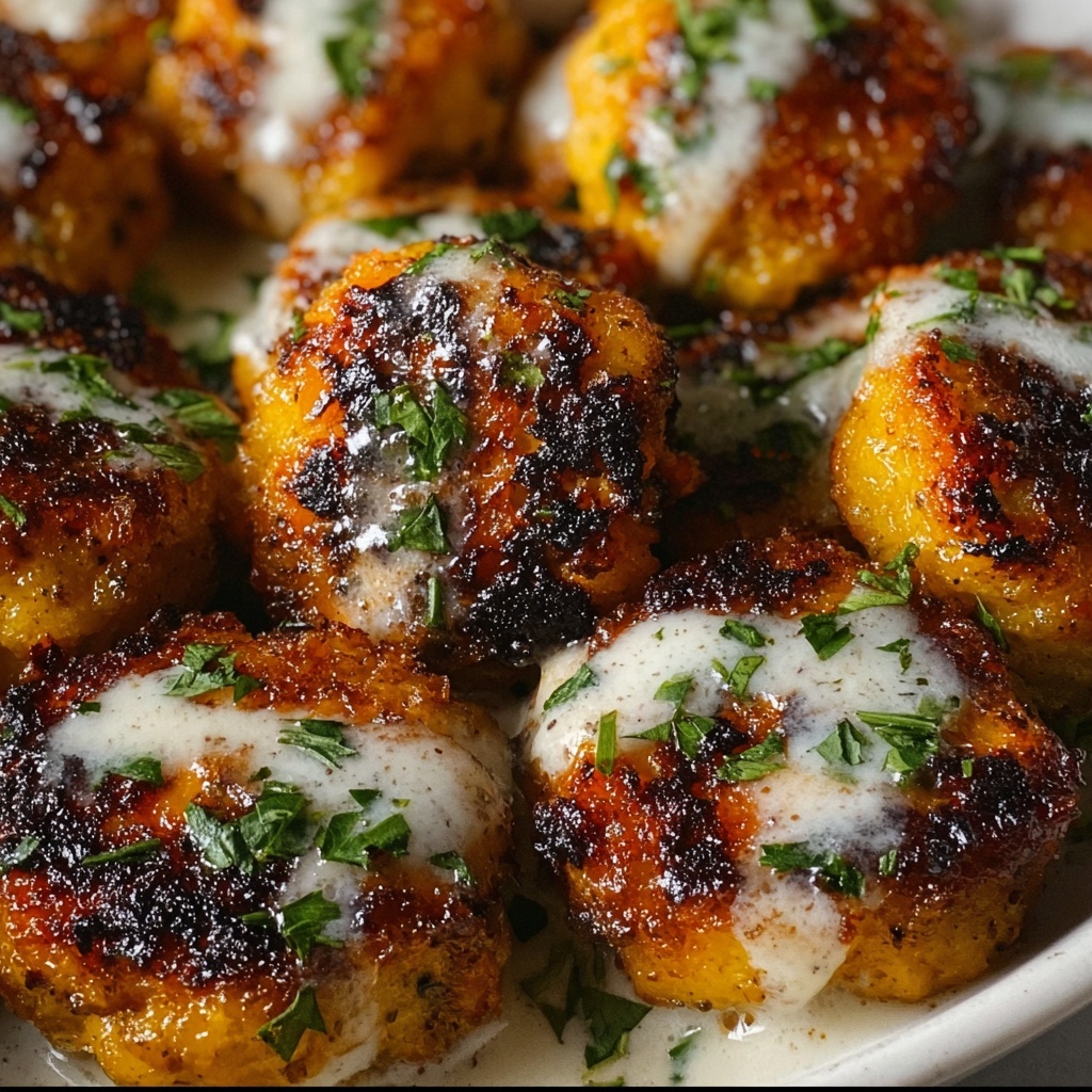 Garlic Butter Parmesan Chicken Bites with Creamy Herb Sauce Recipe
