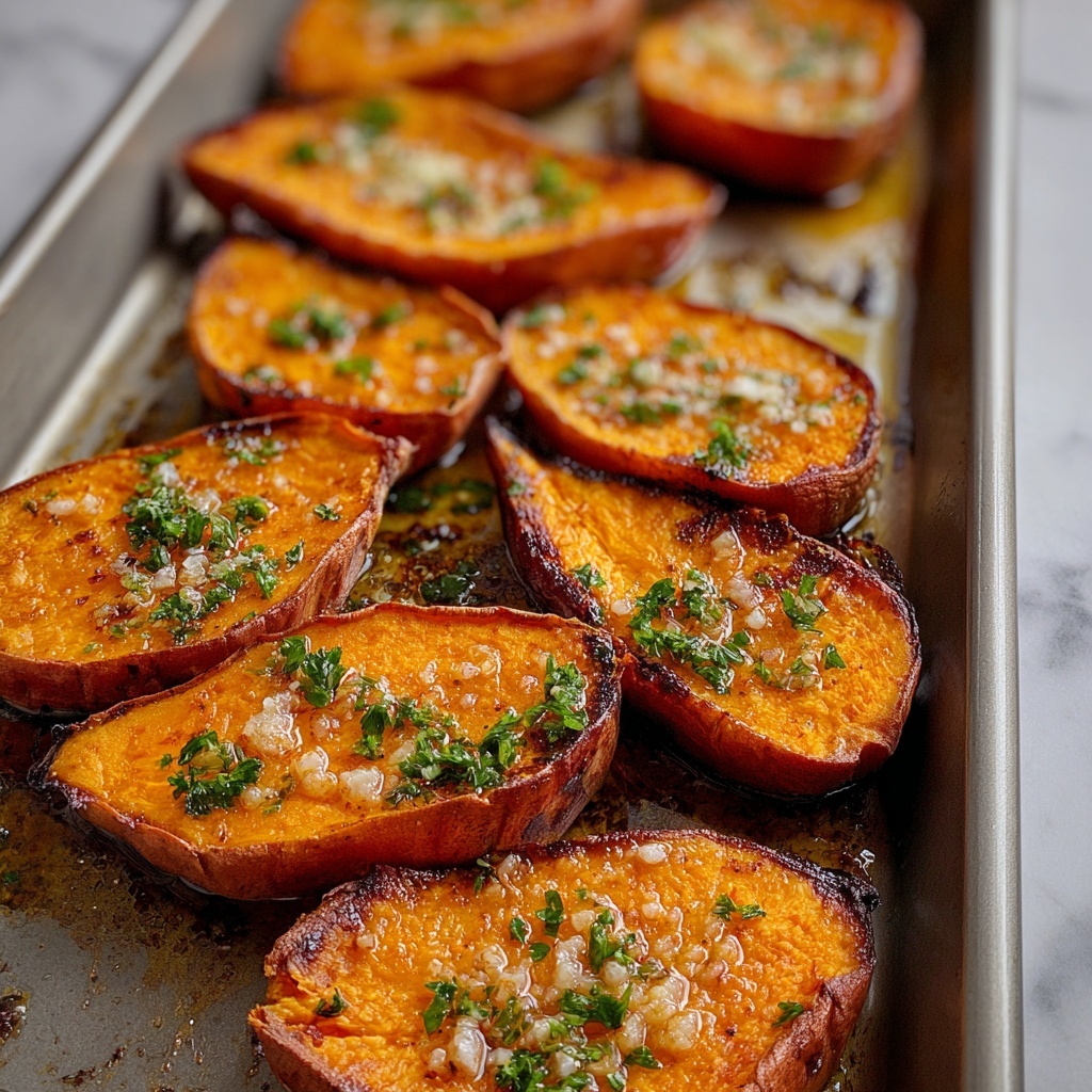Garlic Butter Roasted Sweet Potatoes Recipe