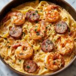 Once the pasta is just tender, stir in the heavy cream, browned sausage, and cooked shrimp. Let everything heat through for another 2 to 3 minutes until the sauce becomes luxuriously creamy and velvety. This is the moment when the dish transforms into the rich, comforting meal you’ve been waiting for.