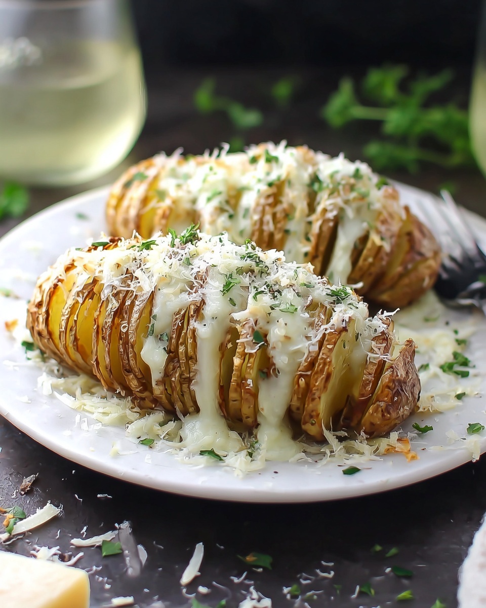 How to Serve Garlic Parmesan Hasselback Potatoes Recipe