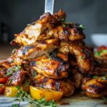 - Cook the Chicken: Preheat a grill or skillet over medium-high heat. Remove the chicken from the marinade and cook for 5 to 6 minutes on each side until fully cooked through and slightly charred on the outside. Once cooked, transfer the chicken to a plate and let it rest for 5 minutes to retain its juices.