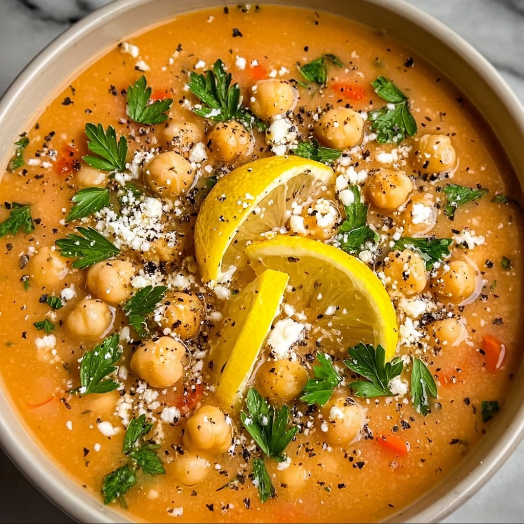 A hearty and zesty Greek Chickpea Soup with Lemon, featuring tender chickpeas simmered with aromatic herbs and brightened with fresh lemon juice and zest. This comforting and nutritious soup is easy to prepare in just 35 minutes and perfect for a wholesome lunch or dinner.