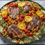 This Greek Chicken and Lemon Rice recipe features tender, marinated chicken thighs or breasts with bright, zesty lemon rice. Infused with classic Mediterranean flavors like oregano, garlic, and cumin, this dish is easy to prepare and perfect for a flavorful weeknight dinner. The chicken is grilled to perfection and served atop fluffy, lemon-infused rice, making a balanced and satisfying meal.