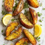 These Greek Lemon Potatoes are a classic and flavorful side dish featuring starchy potatoes roasted to golden perfection with garlic, lemon juice, olive oil, and oregano. The method involves roasting the potatoes twice to achieve a crispy texture with a tangy and aromatic profile, perfect for complementing grilled meats or a Mediterranean meal.
