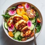 To make a vegan version, swap the halloumi for grilled tofu or a plant-based cheese alternative. The rest of the ingredients and dressing are naturally vegan-friendly, maintaining the bright and fresh essence of the salad.