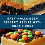 Sprinkle Halloween-themed sprinkles generously over the top of the dessert to provide a fun, colorful finishing touch. Then refrigerate the assembled dish for at least 4 hours, allowing the layers to set properly. When chilled, the dessert will slice neatly into delicious, photogenic squares, ready to impress everyone at your table.