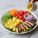 On a large serving platter, create a colorful bed with chopped lettuce, avocado wedges, sliced red onion, halved cherry tomatoes, and finely shredded carrot. Spoon 1 to 1 1/2 cups of your fragrant Coconut Lime Cilantro Rice over the greens, then top with thickly sliced chicken. Scatter the caramelized pineapple and corn over the top and generously drizzle the zesty cilantro dressing all over. This final assembly brings all the components together in one picture-perfect, tantalizing dish.