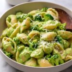 This Healthy Broccoli Pasta Recipe combines tender broccoli and shell pasta in a flavorful garlic and red pepper-infused olive oil sauce, topped with freshly grated Parmesan cheese. It’s a nutritious and easy-to-make meal perfect for a quick weeknight dinner that is both satisfying and wholesome.