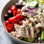 These simple ingredients come together effortlessly, each playing an essential role to create a salad that’s as colorful as it is tasty. From the juicy grilled chicken to the tangy dressing, every element adds texture, brightness, and that unmistakable Greek flair.