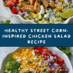 A fresh and flavorful Healthy Street Corn-Inspired Chicken Salad combining shredded chicken with sweet corn, vibrant vegetables, and a creamy, tangy dressing seasoned with chili powder and cumin, perfect for a quick and nutritious meal.
