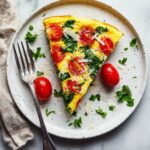 For a colorful serving idea, cut the frittata into wedges and arrange them on a platter with slices of avocado and cherry tomatoes for a bright, inviting plate. Or serve small slices as part of a brunch buffet alongside hummus and crudités for a crowd-pleasing healthy option.