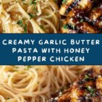 A delightful Honey Pepper Chicken paired with creamy garlic butter pasta, combining sweet and spicy glazed chicken with rich, cheesy fettuccine for a comforting and flavorful meal ready in just 35 minutes.