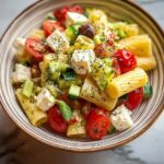 Horiatiki Pasta Salad is a vibrant and refreshing Mediterranean-inspired dish that combines tender cooked pasta with fresh vegetables, Kalamata olives, and a tangy dressing of olive oil, red wine vinegar, and lemon juice. Crumbled feta cheese adds a creamy, salty touch, making this salad perfect as a light meal or side dish, especially enjoyed chilled.