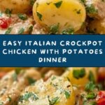 This Italian Crockpot Chicken and Potatoes recipe features tender boneless chicken thighs or breasts cooked slowly with baby potatoes, bell peppers, and onions in a flavorful blend of olive oil, balsamic vinegar, and Italian seasonings. Finished with a touch of Parmesan and fresh parsley, this comforting one-pot meal is perfect for an easy weeknight dinner with classic Italian flavors.