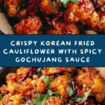 Korean Fried Cauliflower pairs beautifully with steamed jasmine rice or sticky rice to soak up the delicious sauce. For a balanced meal, serve alongside some quick kimchi or lightly dressed cucumber salad to provide a cool, crisp contrast to the rich fried cauliflower.