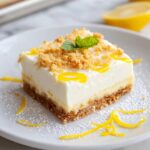 These bars shine with just a simple dusting of powdered sugar and a touch of fresh lemon zest. For extra flair, you can add a dollop of whipped cream or a few fresh berries on the side to add pop and a hint of color. It’s all about enhancing, not overpowering, that beautiful lemon cheesecake flavor.