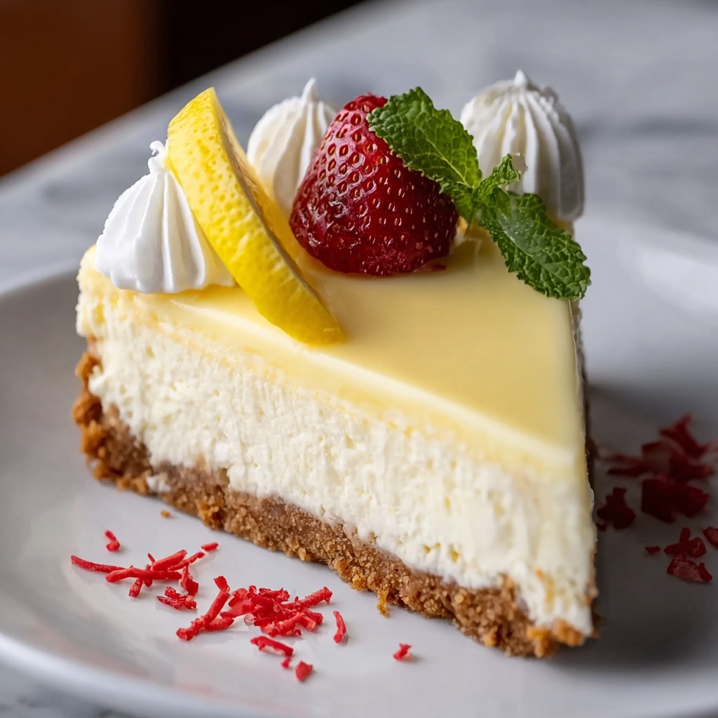 This classic Lemon Cheesecake features a buttery graham cracker crust and a creamy, tangy lemon-infused filling. The cheesecake is baked to perfection with a smooth, luscious texture and optionally topped with a sweet lemon glaze that enhances its citrus flavor, making it a refreshing dessert perfect for any occasion.