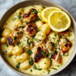 This Lemon Chicken Gnocchi is a quick and flavorful Italian-American dish featuring tender chicken pieces and pillowy gnocchi tossed in a zesty lemon butter sauce with garlic and Parmesan. Perfect for a comforting weeknight meal, it combines savory herbs with the bright freshness of lemon for a balanced, satisfying dinner.