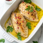 - Rest and garnish: Remove the chicken from the oven and let it rest for 5 minutes. Sprinkle with fresh chopped parsley before serving to add a touch of freshness and color.