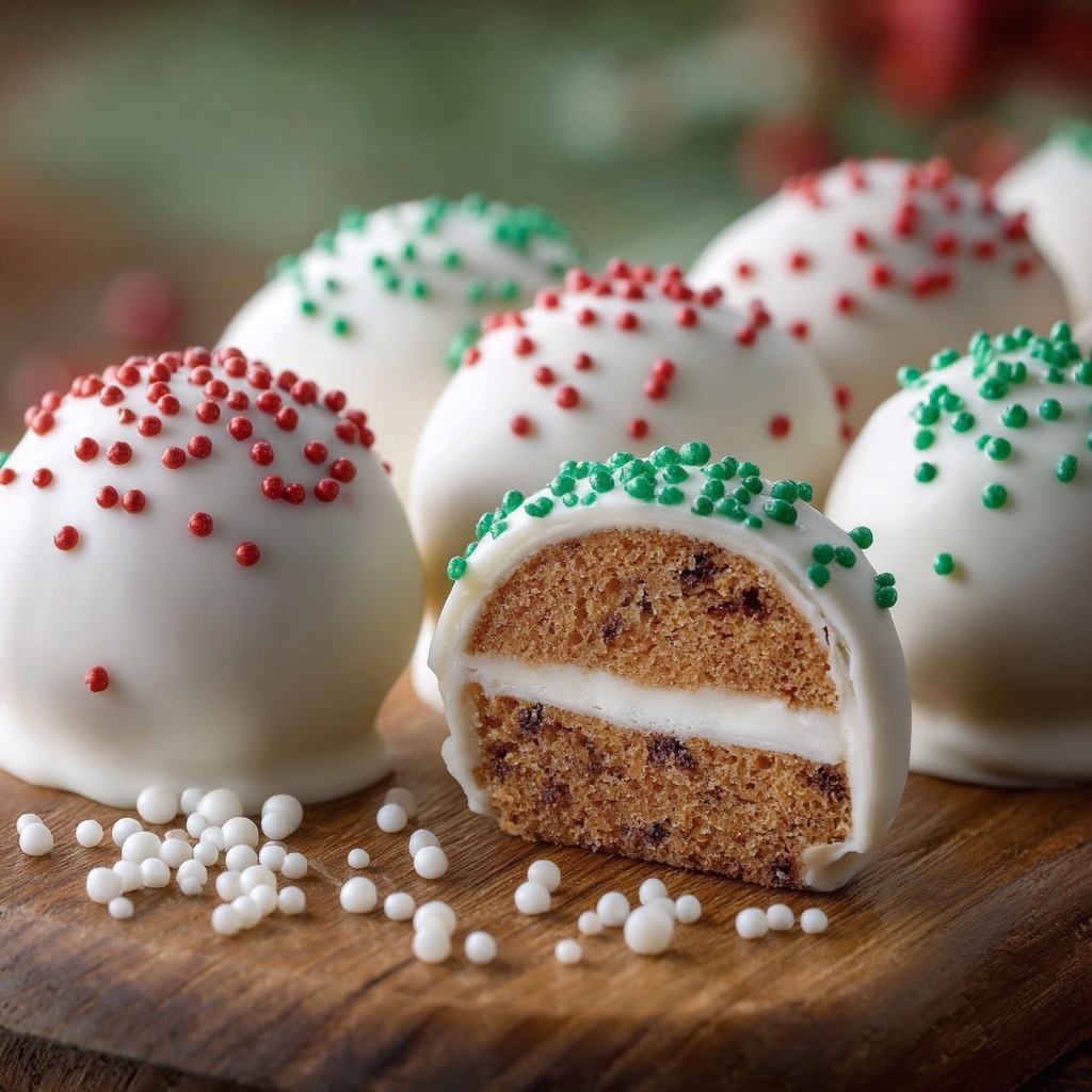 These cake balls stand perfectly on their own, but for a festive spread, pair them with a warm cup of spiced hot cocoa, eggnog, or even a rich coffee. They also make a whimsical companion to a holiday cheese platter, balancing sweet notes with savory bites.
