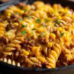 This Loaded Cheddar Ranch Beef and Sweet Corn Rotini Bake is a comforting and flavorful casserole featuring seasoned ground beef, sweet corn, creamy ranch sauce, and sharp cheddar cheese baked to perfection. Ideal for a quick weeknight dinner, it combines pasta and hearty ingredients for a satisfying meal that serves six.