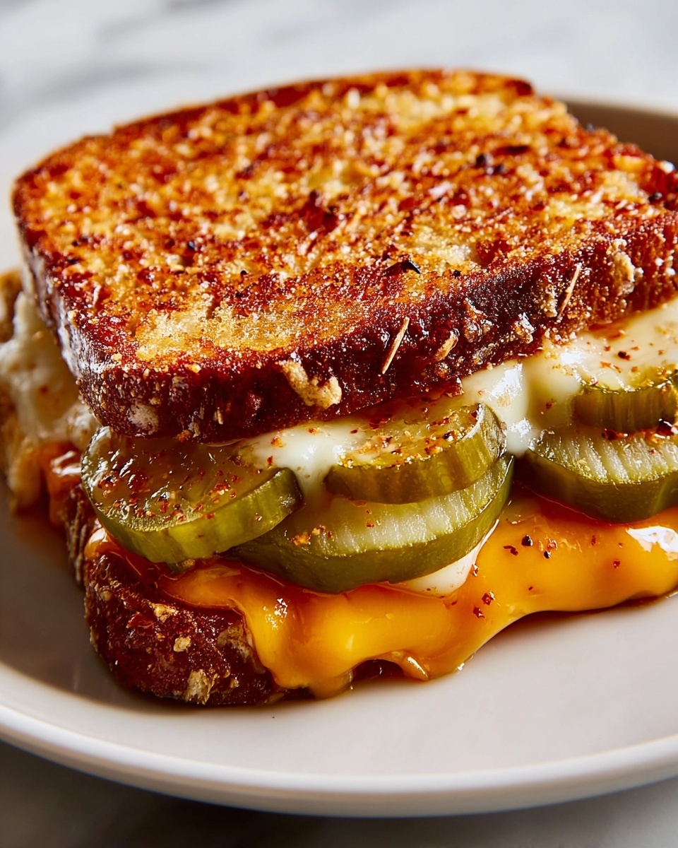 • 2 slices of Cheese (Swiss, cheddar, or your favorite variety): Adds creamy richness and melts just slightly against the cold pickle.