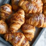 Slice the rolled logs into bite-sized pieces and place them on a baking sheet lined with parchment paper. Bake in a preheated oven at 350°F (175°C) for about 25 minutes. The rugelach should turn a gorgeous golden brown and feel delightfully flaky on the outside while remaining tender inside.