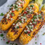 This Mexican Style Corn on the Cob recipe features fresh corn grilled to perfection and generously coated with a creamy, tangy mixture of mayonnaise, cotija cheese, chili powder, and lime juice. Garnished with fresh cilantro and served with lime wedges, this flavorful and vibrant dish offers a perfect balance of smoky, spicy, and tangy notes, ideal as a delicious appetizer or side for summer cookouts and gatherings.