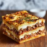 Million Dollar Lasagna is a hearty and indulgent Italian-American baked pasta dish featuring layers of rich meat sauce, creamy cheese mixture, and tender lasagna noodles. This recipe blends ground beef and Italian sausage with a flavorful tomato sauce, complemented by a luscious mixture of ricotta, cream cheese, sour cream, and cheeses, baked to golden perfection for a comforting and satisfying family meal.