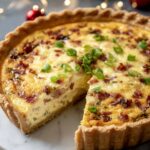 Mississippi Sin Quiche is a rich and savory deep-dish quiche featuring tender cooked turkey blended with cream cheese, cheddar, green onions, and a hint of hot sauce for a flavorful twist. This comforting dish is baked to perfection with a creamy custard filling inside a flaky pie crust, making it an ideal meal for brunch, lunch, or a cozy dinner.