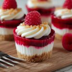 These No Bake Lemon Raspberry Cheesecake Cups are a refreshing and easy-to-make dessert that combines a crunchy graham cracker crust with a tangy lemon-flavored cream cheese filling, topped with fresh raspberries. Perfect for a light and delightful treat without the need for baking.