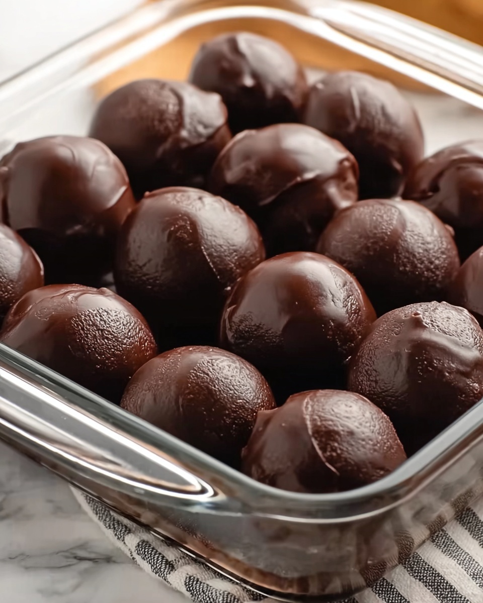 Pop the chocolate-dipped balls back into the fridge and chill for 20 to 30 minutes, or until the coating hardens completely. This ensures you get that satisfying snap when you bite into one.