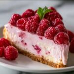 - Serve: Before serving, top the cheesecake with additional fresh raspberries and garnish with mint leaves if desired for a refreshing look and flavor.
