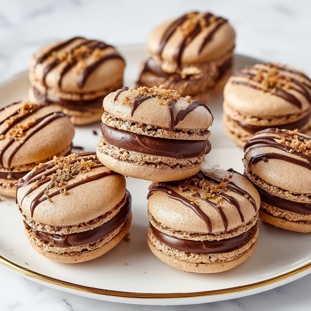 These macarons are perfect on their own but also pair beautifully with a scoop of vanilla or hazelnut ice cream for a delightful contrast of textures. Serve alongside a cup of rich espresso or a frothy cappuccino to balance the sweetness with a sophisticated bitterness. Fresh berries or a fruit compote can also bring a refreshing burst of acidity to the plate.