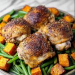 This One Pan Maple Mustard Chicken recipe combines juicy, crispy chicken thighs with sweet potatoes and green beans, all roasted together in a delightful maple Dijon sauce. It’s a flavorful and easy-to-make dinner perfect for a wholesome family meal.