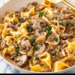 For an ultra-creamy stroganoff, make sure to use full-fat sour cream and stir it in gently off heat to avoid separation. You can also add a little cream cheese or heavy cream if you want it richer and silkier.