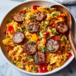 This One-Pot Smoked Sausage and Rice Dinner is a simple, flavorful meal perfect for busy weeknights. Combining smoky sausage with tender rice and vibrant vegetables, it cooks entirely in one pot, minimizing cleanup while maximizing taste. The dish features sautéed smoked sausage, bell peppers, onions, and garlic, all simmered with paprika and herbs in chicken broth to create a hearty, comforting dinner for four.