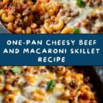 This One-Skillet Cheesy Beef and Macaroni recipe is a hearty, comforting meal perfect for busy weeknights. Ground beef is browned with aromatic onions and garlic, then simmered with tender macaroni in a flavorful tomato and beef broth sauce. The dish is finished with generous amounts of melted cheddar and Parmesan cheese, creating a creamy, cheesy pasta bowl all made in a single skillet for easy cleanup.