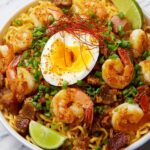 Pancit Palabok is hearty on its own but pairs beautifully with simple Filipino sides like fresh lumpia, salted eggs, or a crisp fresh salad to cut through the richness. And don’t forget a few calamansi or lemon wedges on the side to brighten the experience!