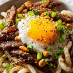 This Pepper Lunch with Udon recipe offers a sizzling, restaurant-style dish featuring thinly sliced beef, udon noodles, and fresh vegetables cooked together on a hot skillet. Combining tender ribeye or sirloin with crunchy bean sprouts, sweet corn, and a savory sauce, it’s a quick and satisfying meal ready in just 20 minutes, perfect for a cozy dinner for two.