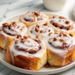 Serve these cinnamon rolls on a wooden board with a rustic cloth napkin for a charming brunch display. Or cut them into bite-sized pieces and offer as finger food at gatherings—perfect for sharing and indulging with friends.
