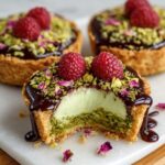 While the extra chopped pistachios add crunch and vibrant color, edible rose petals transform these tartlets into a beautiful centerpiece. A light dusting of powdered sugar right before serving can also highlight the refined nature of this dessert. If you’re feeling playful, a drizzle of honey or a tiny sprinkle of crushed pistachio brittle will add delightful contrasts.