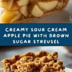 This Sour Cream Apple Pie with Brown Sugar Streusel features a crisp pie crust filled with tart Granny Smith apples tossed in a smooth sour cream mixture, topped with a buttery brown sugar streusel. Baked to golden perfection, this dessert offers a delightful balance of creamy, tart, and sweet flavors, perfect for any occasion.