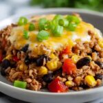 This Southwest Rice and Ground Turkey Skillet is a flavorful, quick one-pan meal packed with seasoned ground turkey, vegetables, black beans, corn, and cheese. Perfect for busy weeknights, this dish combines the spicy zest of southwestern spices with hearty ingredients and melty cheddar cheese for a comforting yet healthy dinner option.