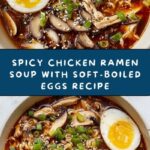 Nothing warms the soul quite like a bowl of Spicy Chicken Ramen Soup with Soft-Boiled Eggs Recipe. This vibrant soup marries the rich, savory broth with the heat of chili paste and the comforting texture of tender chicken and perfectly cooked ramen noodles. The crowning glory is those silky soft-boiled eggs, whose creamy yolks meld beautifully with every spoonful. It’s a dish that’s as satisfying to make as it is to enjoy, perfect for those moments when you crave something both cozy and packed with flavor.